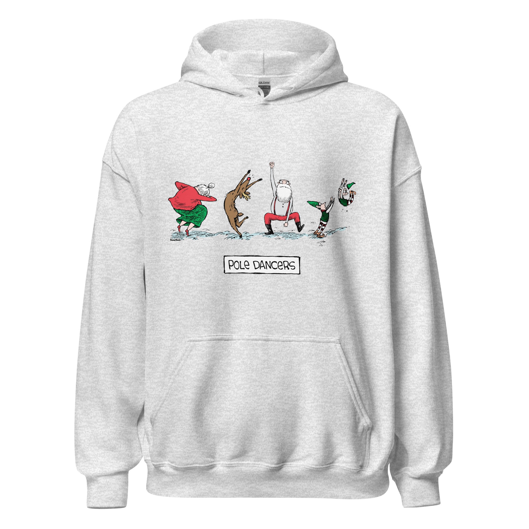 Bust a move with Santa and Mrs. Claus, Rudolph and some acrobatic elves, who all know that dancing is one of the best ways to stay warm. This cheeky “Pole Dancers” hoodie features artwork by beloved Speedbump cartoonist Dave Coverly and is guaranteed to bring much-needed chuckles to your holiday season.